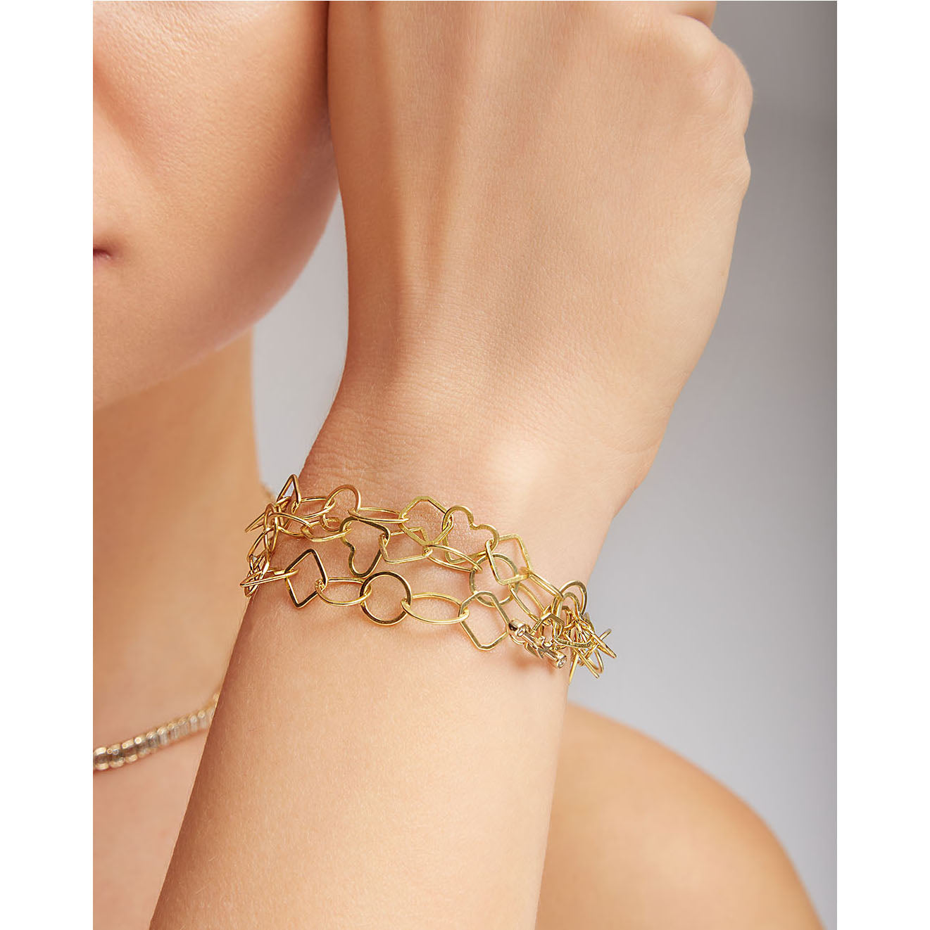 Size your cuffs and bangles to fit snugly, and your link and chain bracelets with a touch of breathing room to allow for movement.